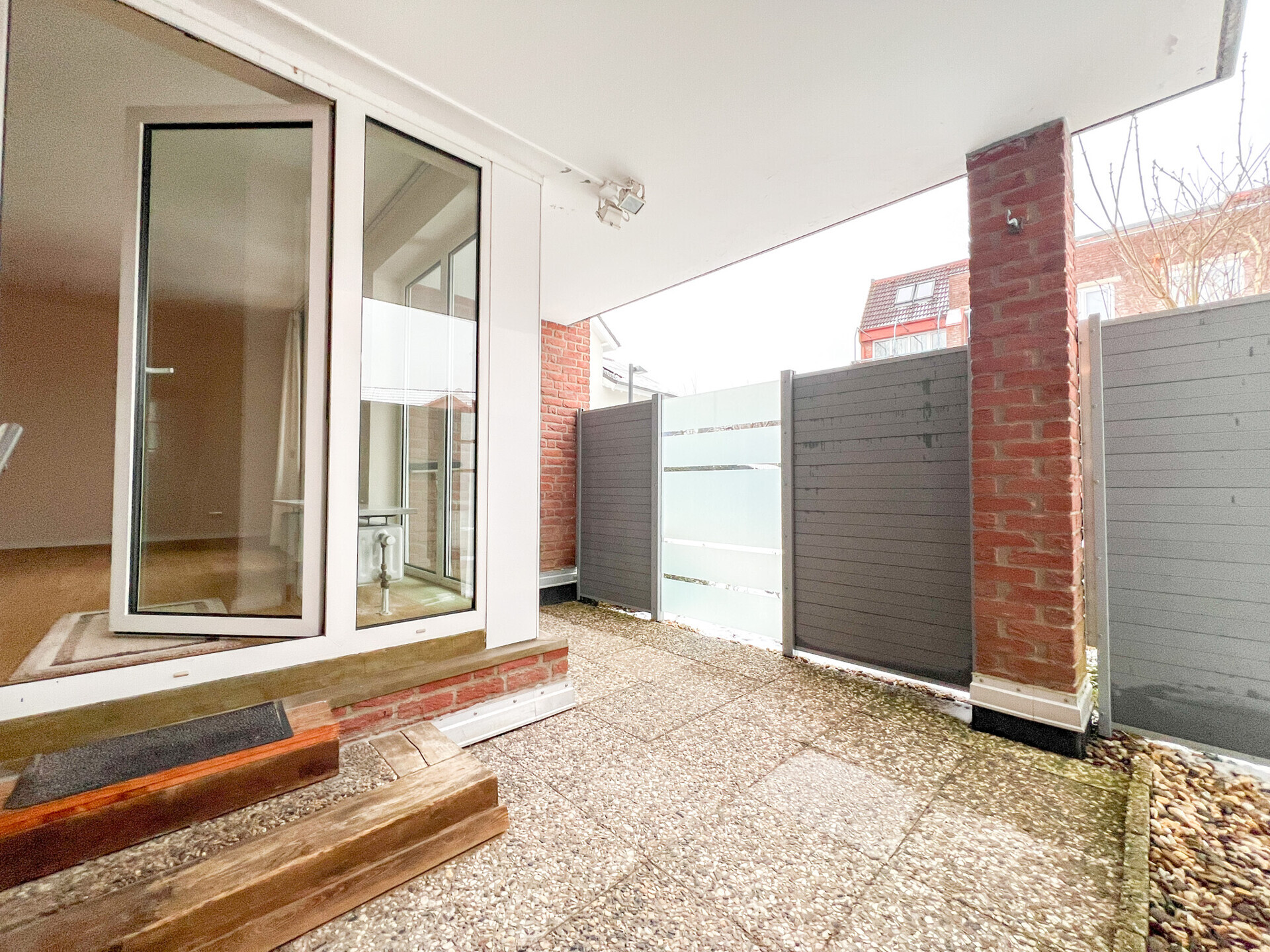 vollständig eingezäunt ist und über einen eigenen Zugang verfügt. Sie bietet damit zusätzlichen Komfort und eignet sich ideal zum Entspannen im Freien.