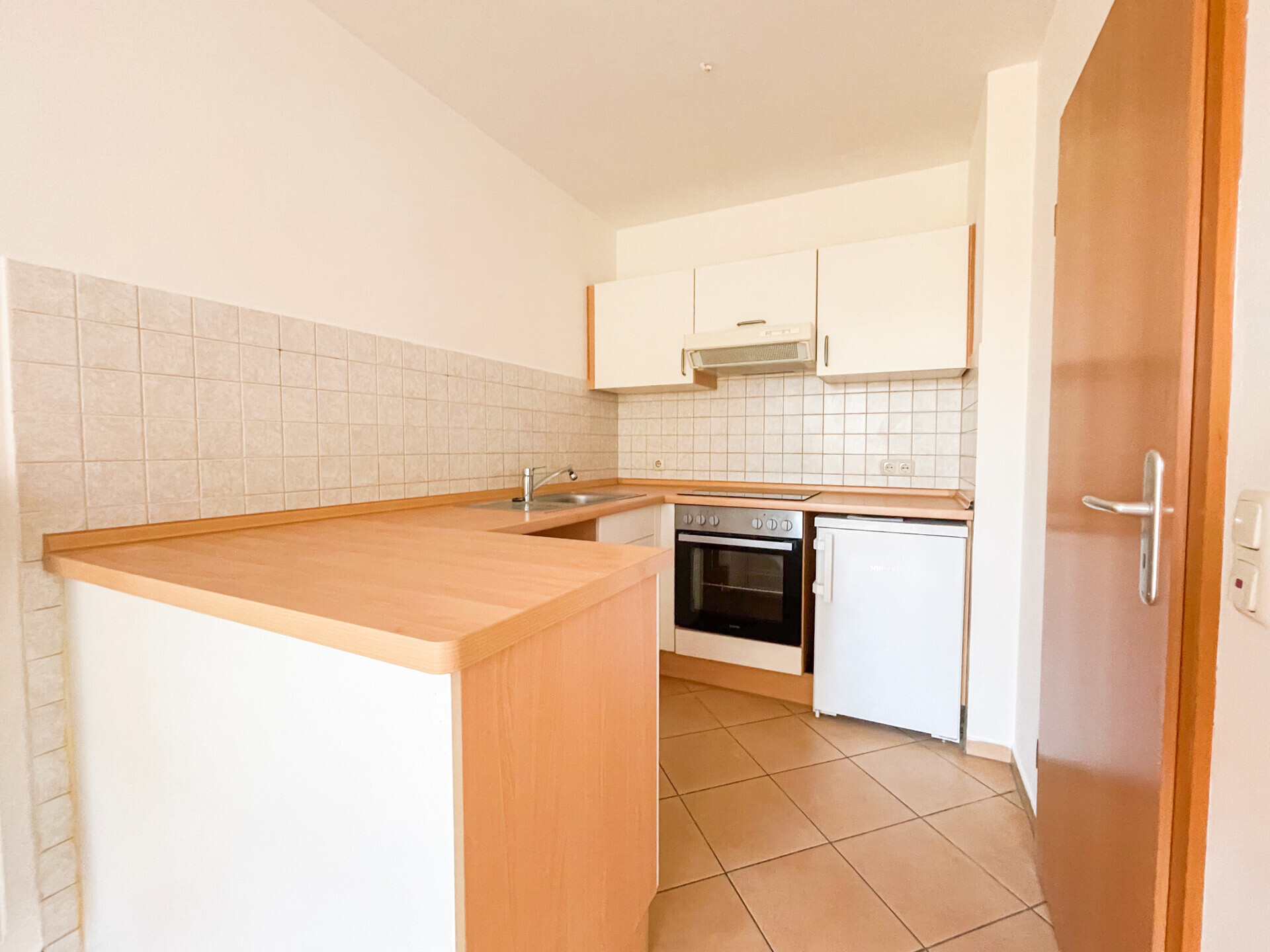 angenehmen Lichtdurchflutung. In allen Räumen sind pflegeleichte Fliesen verlegt. Ein Außenstellplatz gehört ebenfalls zur Wohnung.